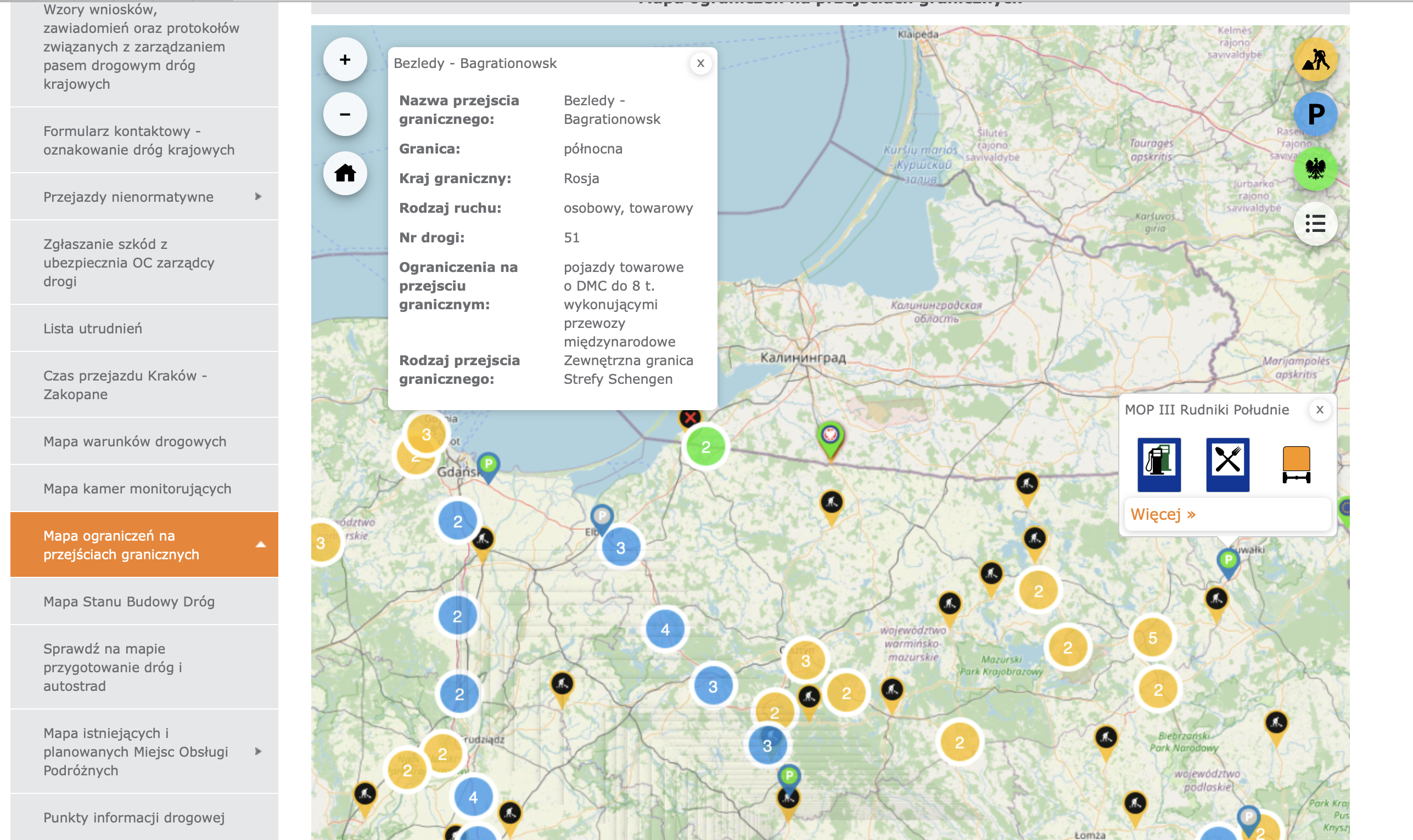 В прикрепленном выше файле указаны полный перечень национальных дорог Польши в 2-х списках, по которым могут передвигаться АТС с допустимой нагрузкой на одиночную, ведущую ось до 11.5 и 10,0 т. Погран.перехода Веzledy в нем нет! Всю инфо можгно найти на сайте министерства транспорта : www.gddkia.gov.pl. ( DROG KRAJOWYCH I AUTOSTRAD), но сейчас из РФ на него почему-то нельзя зайти.Я попросил поляков скопировать страницу по макс. нагрузке на оси на этом погран. переходе. ( файл прилагаю)